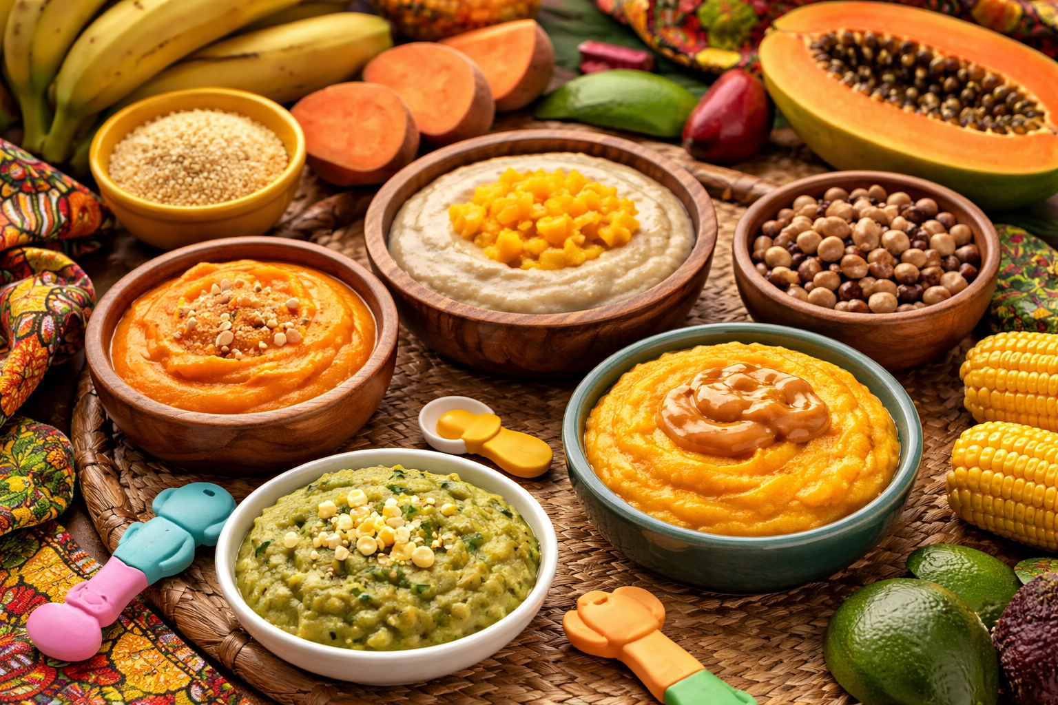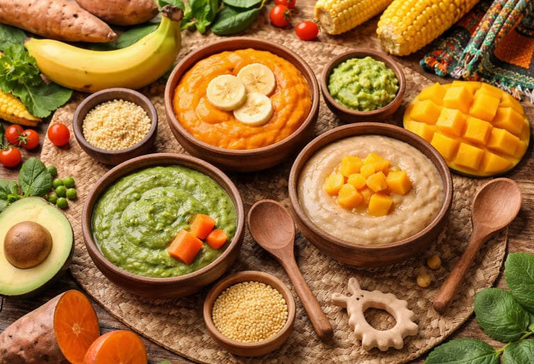 One‑week nutritional meal plans using common African ingredients; adjust portions to your baby’s appetite and growth, and always breastfeed freely.
