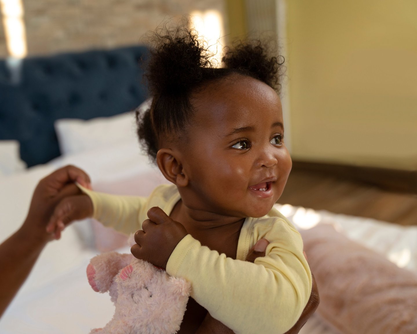 Hold, cuddle and talk to your baby often; eye contact and gentle voice build trust and security.