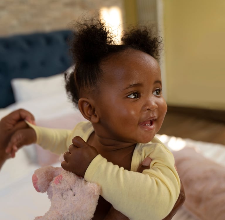 As the child grows, play simple games, sing, tell stories in Kinyarwanda and your family language; this supports brain development and cultural identity.